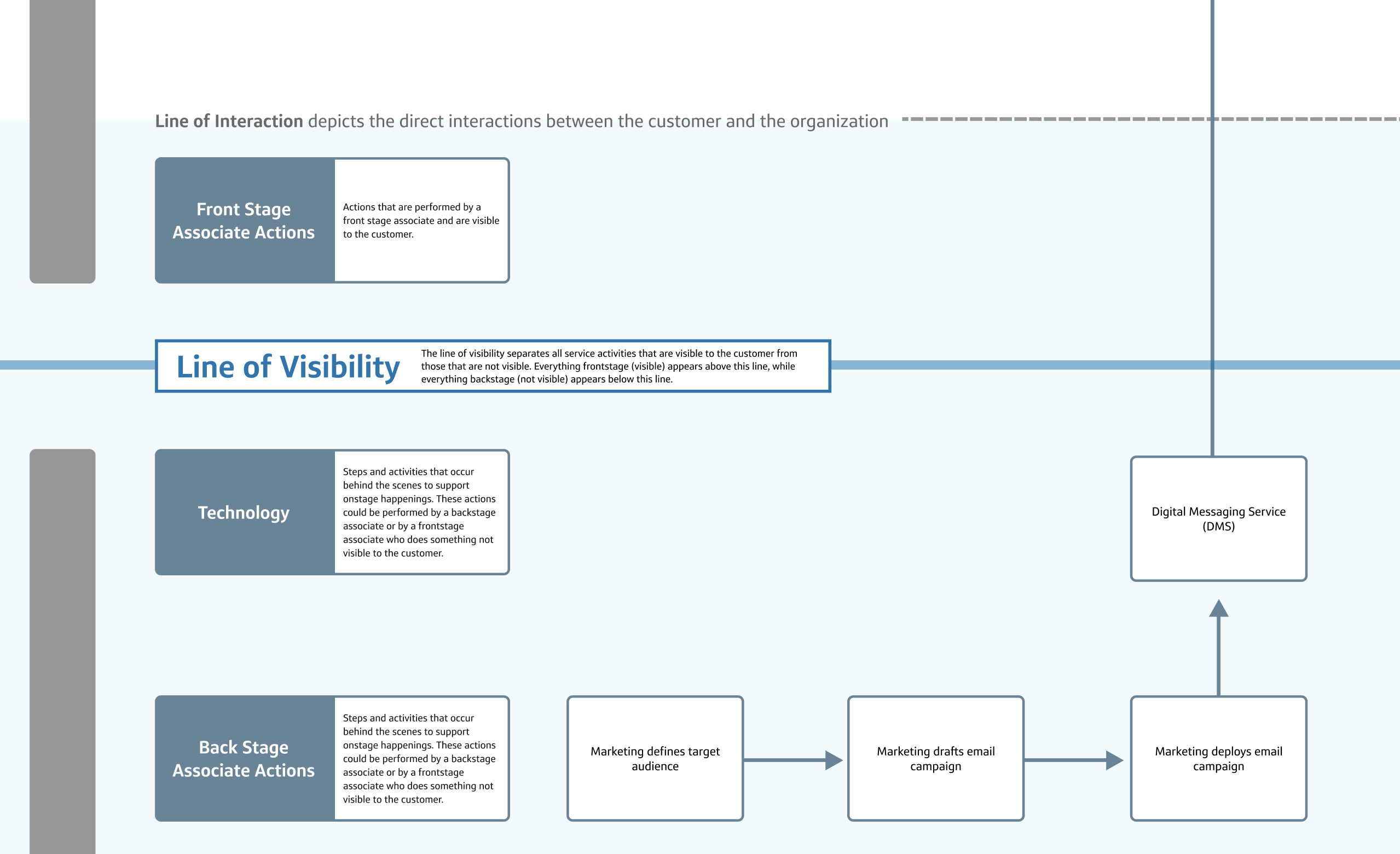 I worked with my design team to create a single diagram outlining all the steps of the service experience, while tying in the underlying components needed to actually build the thing.