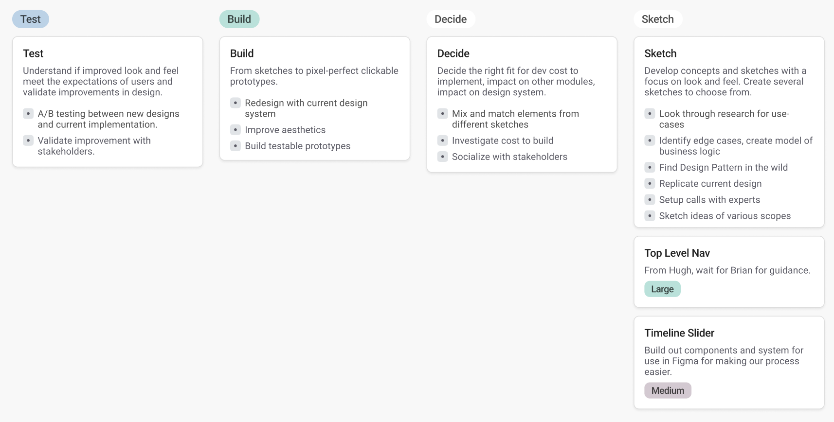 Decide the right fit for dev cost to implement, impact on other modules, impact on design system.
